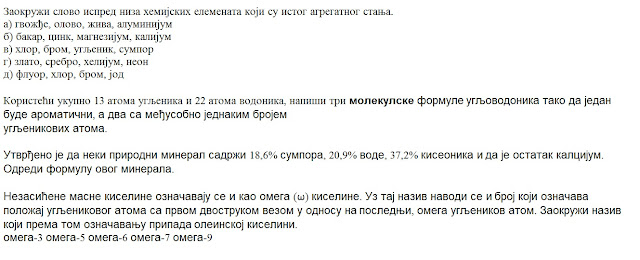 Prositajte i rijesite neka od mogucih pitanja za test iz hemije za osmi razred.